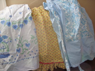 I first stumbled across her aprons. I distinctly remember her wearing the three in the first photo. Aren’t they great? They need a good ironing. And then I need to find a special place to show them off some day.